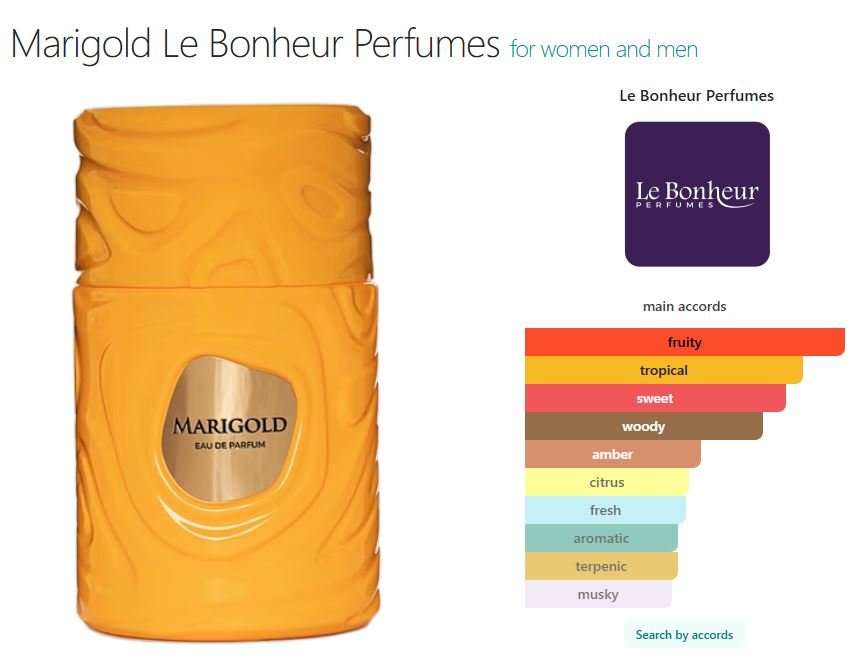 Marigold by Le Bonheur Perfumes is a Oriental fragrance for women and men. This is a new fragrance. Marigold was launched in 2024.
